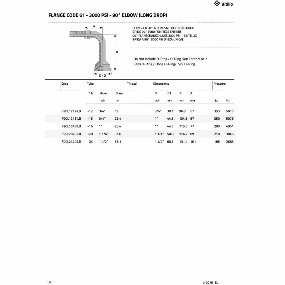 FLANGE CODE 61 – 3000 PSI – 90 ° ELBOW (LONG DROP)