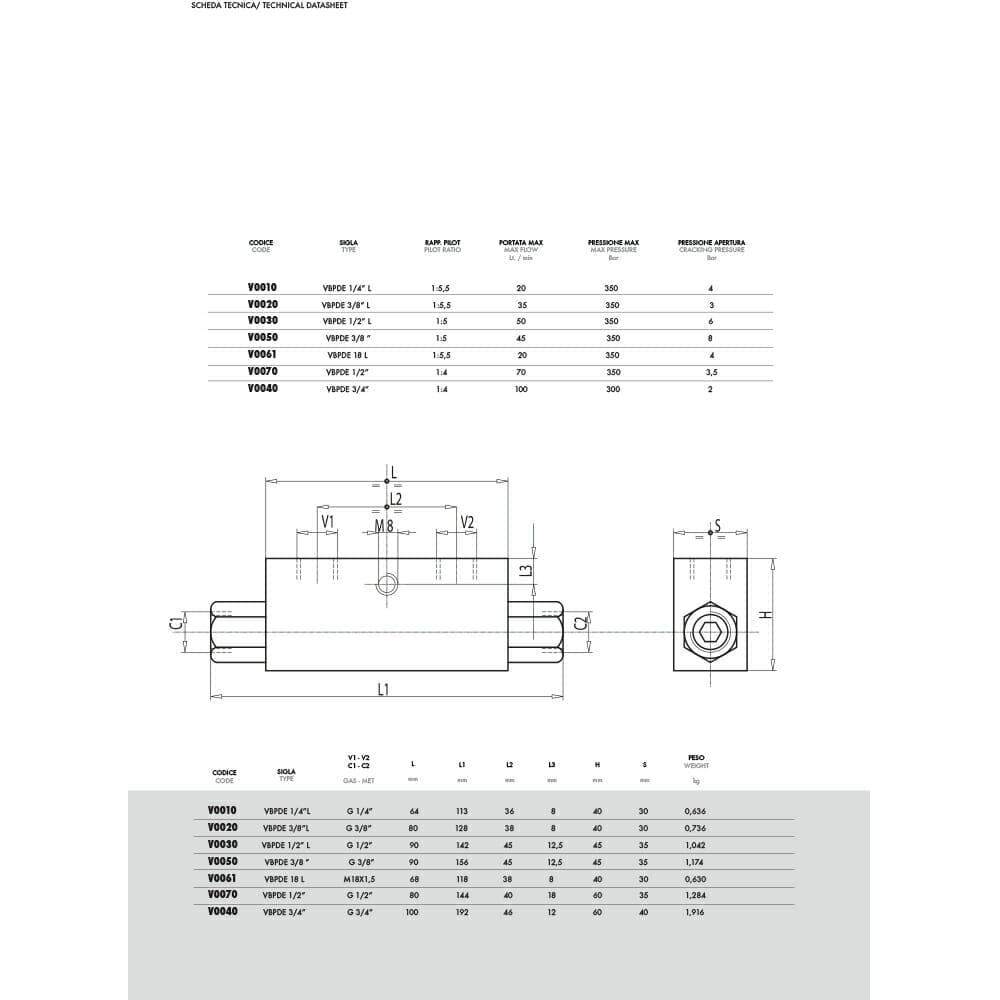 The VBPDE double pilot check valve is an essential component for controlling flow direction in hydraulic systems. Designed with precision, it ensures smooth flow in one direction while preventing reverse flow until pilot pressure is applied.