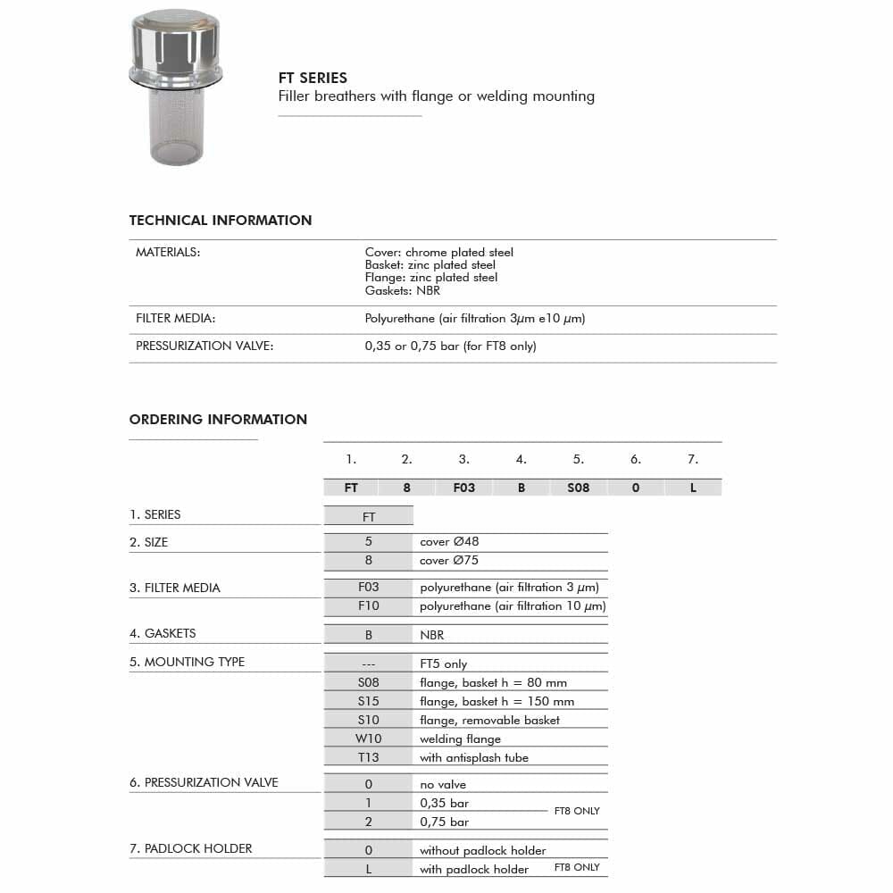 The air breather filters are integral part of the filtration within the hydraulic system, as they retain the environment contamination that could enter into the reservoir with the air sucked due to the oil level fluctuations during the system operation.