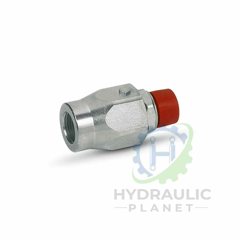 For mounting between the end of a flexible hose and a fixed component to compensate hose’s rotations and torsion and to prevent its damaging. Not suitable for fast and continuous rotations. Used in every production field where systems have flexible moving hose. In line mounting.