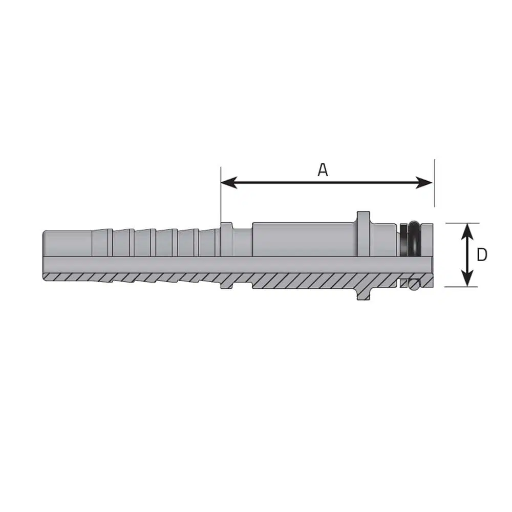 Complete range of mild steel high pressure hydraulic hose inserts for flexible hydraulic hoses in accordance with the standards ISO 12151 SAE J516. Wide variety of threads, types and sizes.