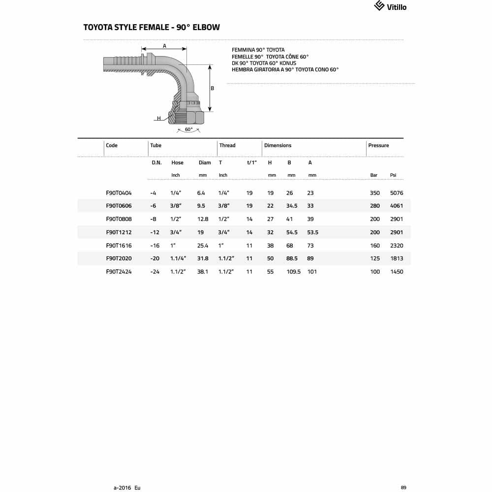 TOYOTA STYLE FEMALE – 90° ELBOW